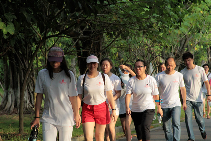 金鐘水庫全長12公里,常規情況下徒步預計3個小時,而最終在隊員們的互相鼓勵下,本次全體成員到達終點僅用不到2個小時。雖然每個人都大汗淋漓,但卻在徒步過程中感受到了團體的力量和運動帶來的放松。