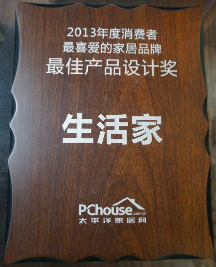 在此次活動中,生活家榮獲“2013年度消費者最喜愛家居品牌-最佳產品設計獎”。
