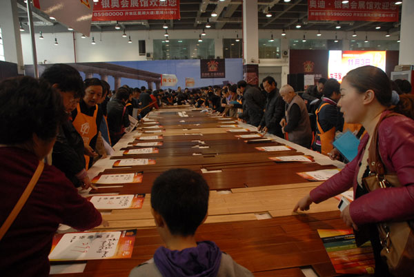 (消費者紛紛選購地板)